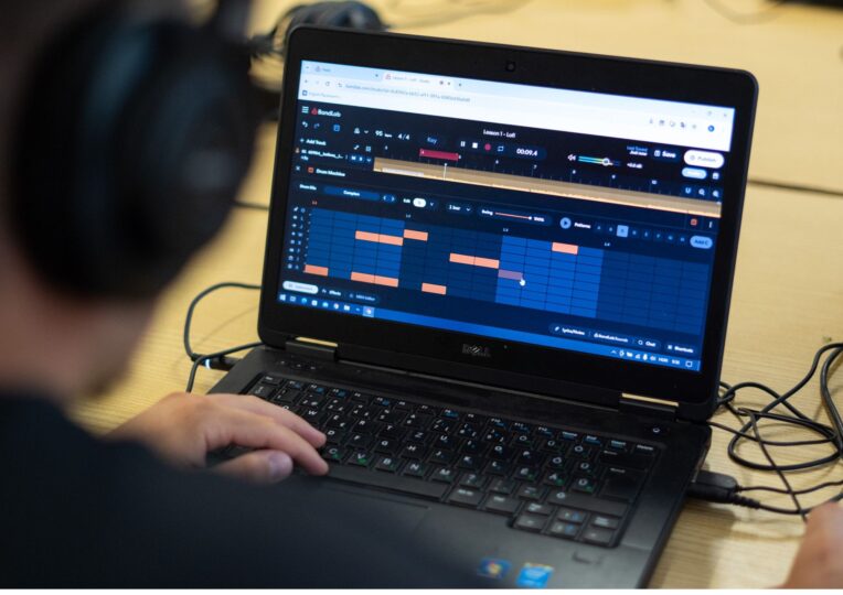 No prior training necessary – just bring your creativity! If you have your own instrument, you can briefly use it to record sound samples. Most of the work will be done individually or in small groups using the music software.”