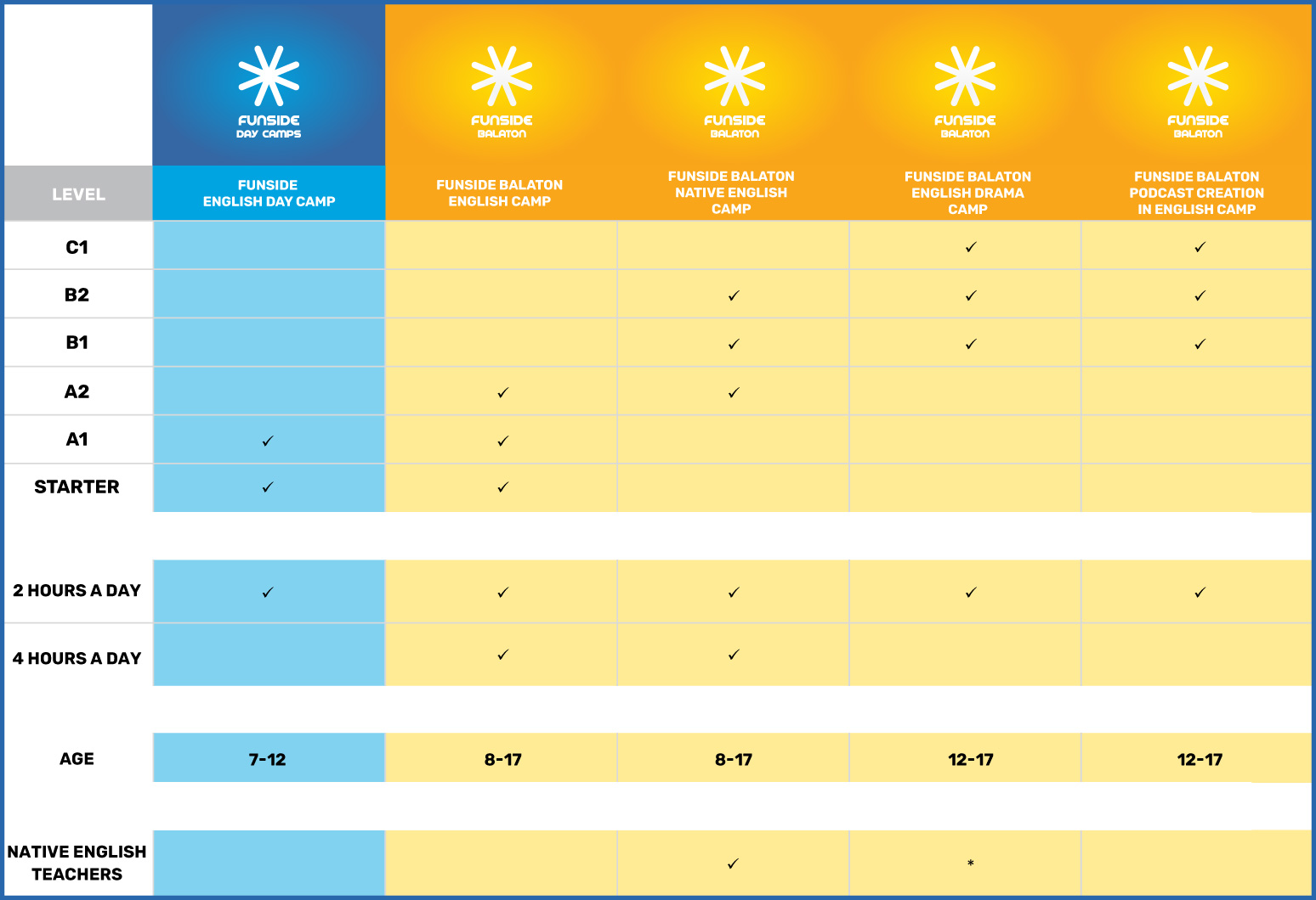 Choose the summer course that best suits your age, level and interests below