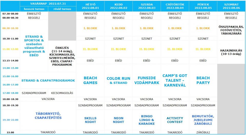 Egész héten gondolkozhattok majd, hogy milyen állomást szeretnétek megvalósítani a csapatotokkal, de a tényleges bemutató ideje csütörtökön jön el, a Camp’s got talent keretében, aminek témája a Karnevál lesz! Este a vadiúj Activity Contesten csaphattok majd össze egymással, majd a szezon utolsó napján szintén egész nap bulizni fogunk, hiszen Beach partyt követően a táborzáró Tinidiscoval búcsúztajuk majd az idei Funside nyarat!