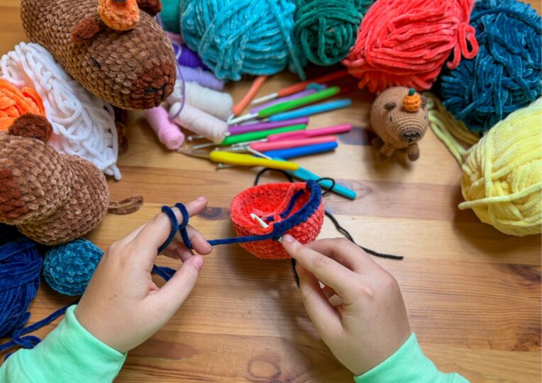 - Otthoni alkotás folytatása: A tábor során használt mintákat hazaviheted, így otthon is folytathatod a horgolást, és újabb figurákat alkothatsz.